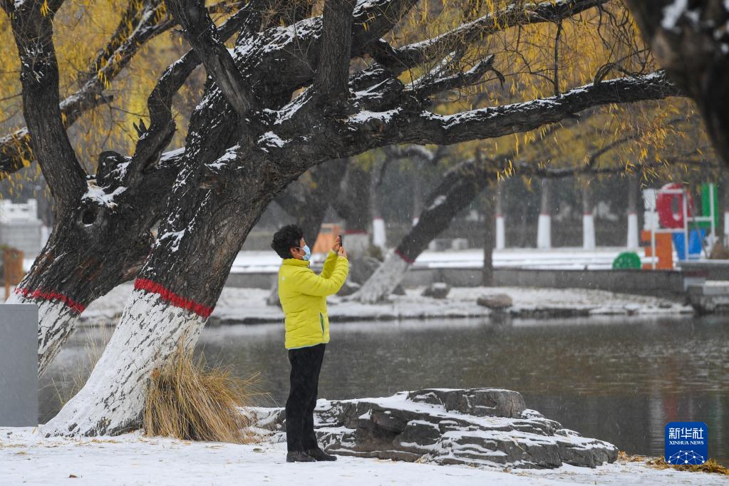 当日,受寒潮影响,内蒙古呼和浩特市最低气温达零下12℃,在“立冬”节气来临的前一天迎来降雪。新华社记者 刘磊 摄