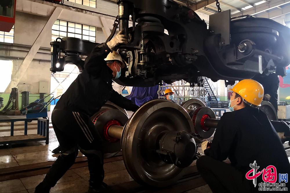 更换列车车厢走行部。李溢春摄