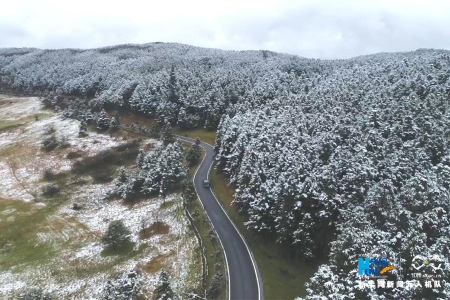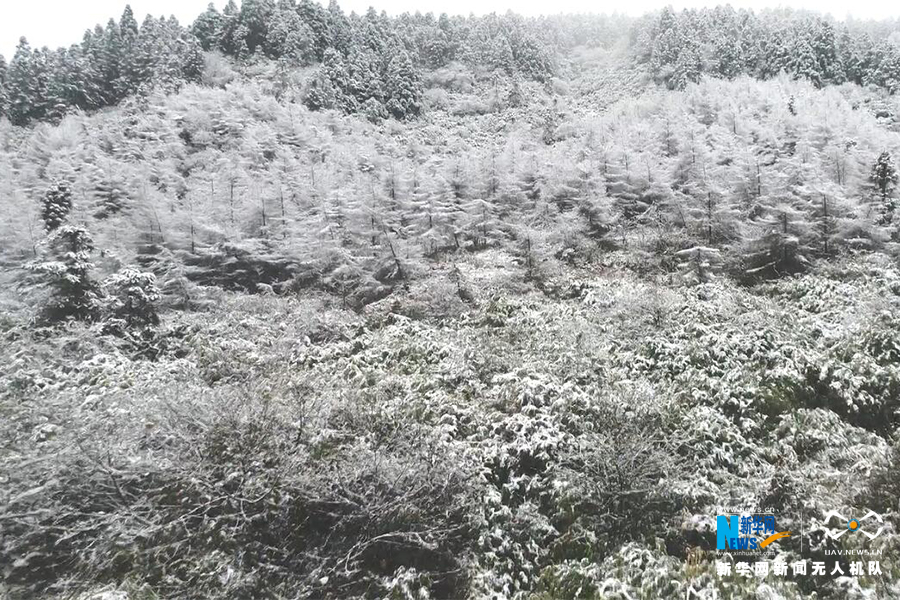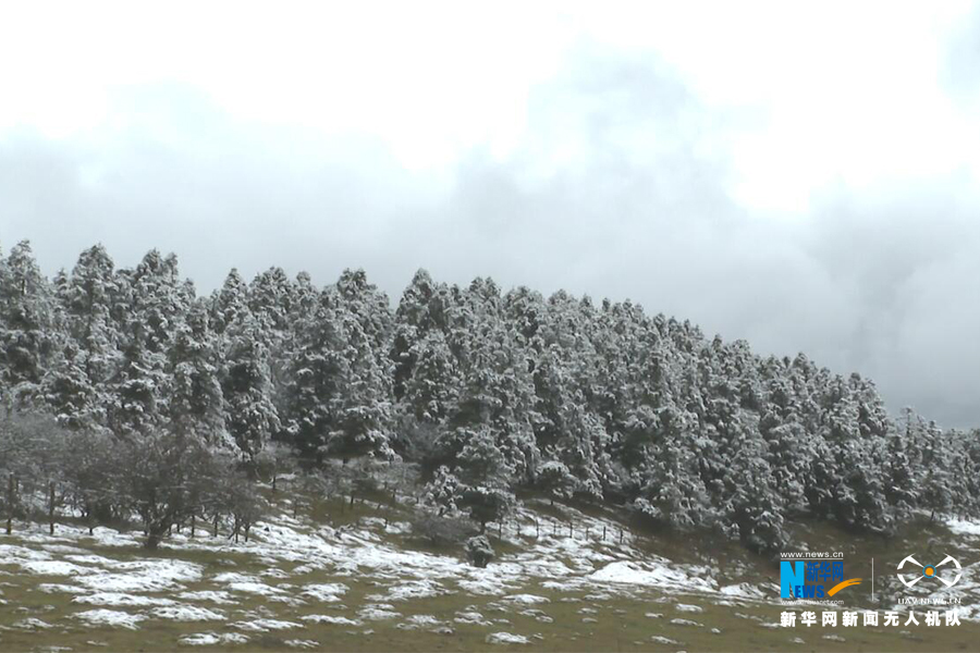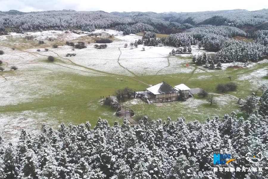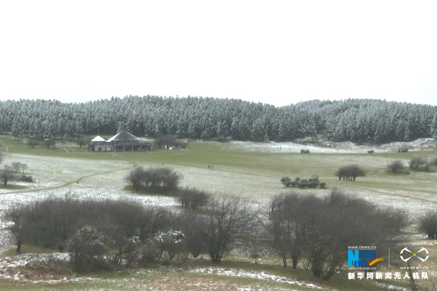 受强冷空气影响,11月22日,重庆市武隆区仙女山景区迎来了大范围降雪天气,积雪厚度最高达到5厘米。整个景区的森林和草原都被冰雪所覆盖,呈现出一派瑞雪丰年的景象。新华网发(王津川 摄)
