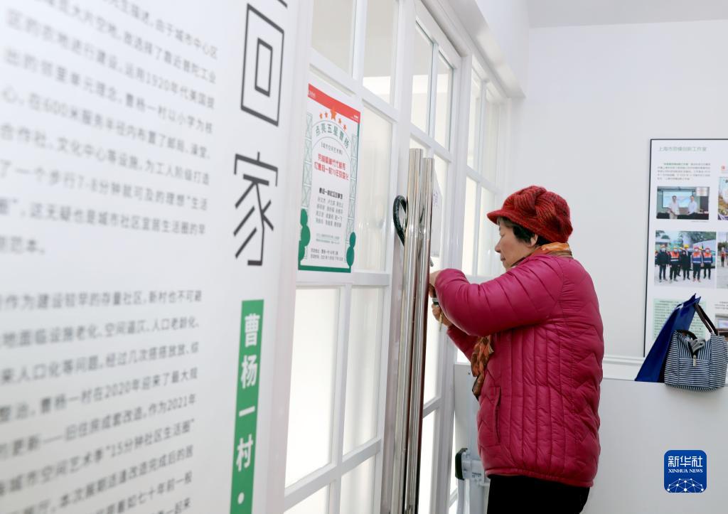 11月23日,1952年入住曹杨一村,居住至今的居民孙雅芬来到社区故事馆,准备开始志愿者工作。新华社记者 刘颖 摄