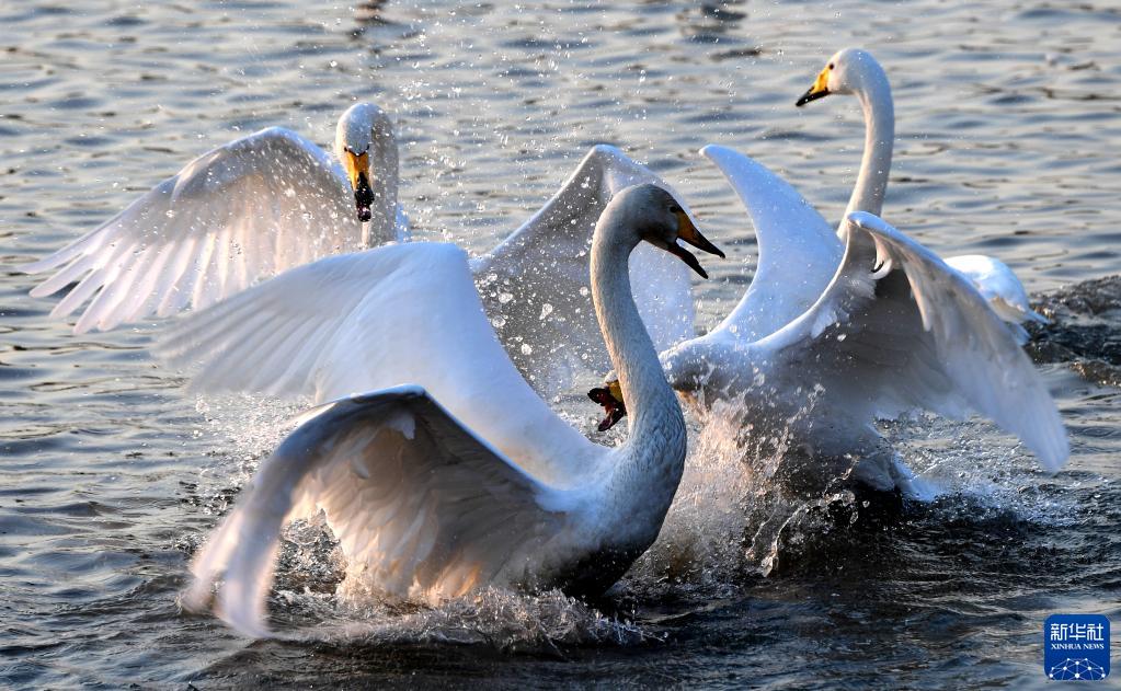 近日,大批白天鹅从西伯利亚迁徙到河南省三门峡市黄河湿地栖息越冬,形成一幅宁静和谐的美丽画卷。