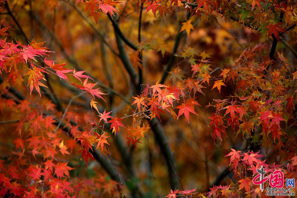 2021年11月30日,江苏省淮安市,古淮河生态景区成片枫叶红了,呈现别样风韵。图片作者:周长国/视觉中国