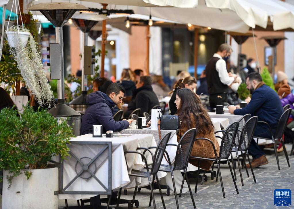 11月30日,人们在意大利罗马一处餐馆的户外区域消费。