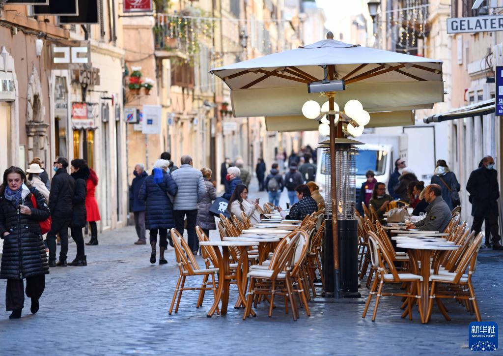 11月30日,人们在意大利罗马一处餐馆的户外区域消费。