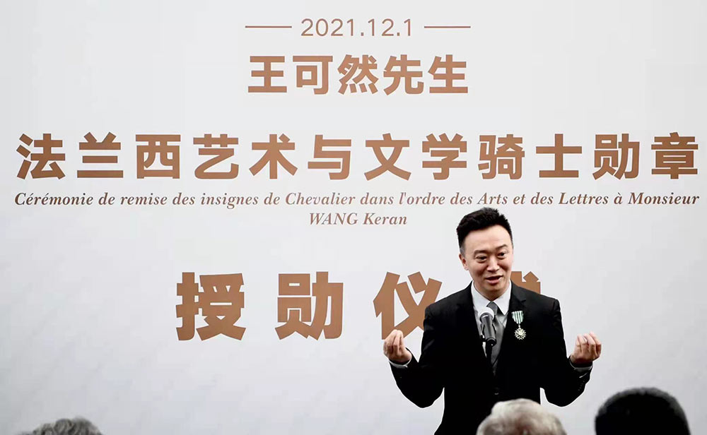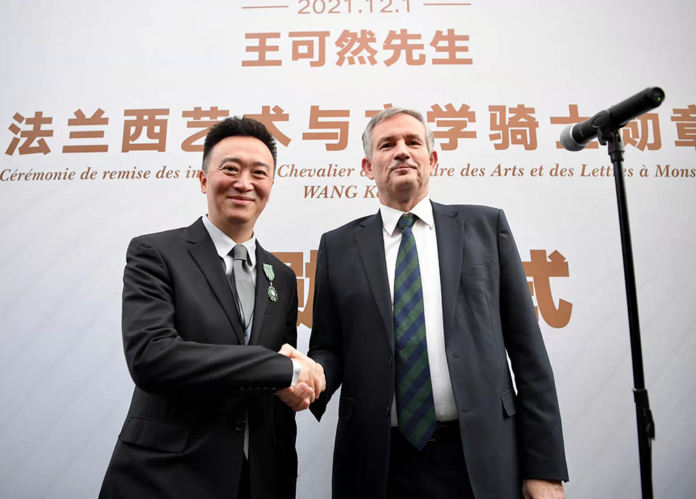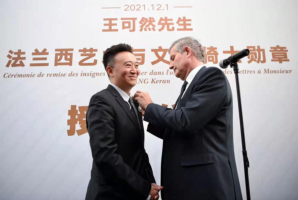 2021年12月1日下午,法国文化部授予央华戏剧的创始人、艺术总监、总经理王可然先生法兰西艺术与文学骑士勋章,以表彰王可然先生在戏剧领域中的成就和对中法戏剧艺术交流及中法两国之间的友谊所作出的杰出贡献。授勋仪式在北京古城老院精品酒店举行,法国驻华大使罗梁先生为王可然先生颁授勋章,法国驻华大使馆官员、央华戏剧团队、主流媒体代表及王可然亲友等出席。