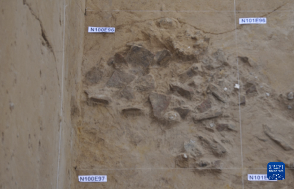 这是赵庄遗址古菱齿象头骨下部的石堆(资料照片)。新华社发(郑州市文物考古研究院供图)