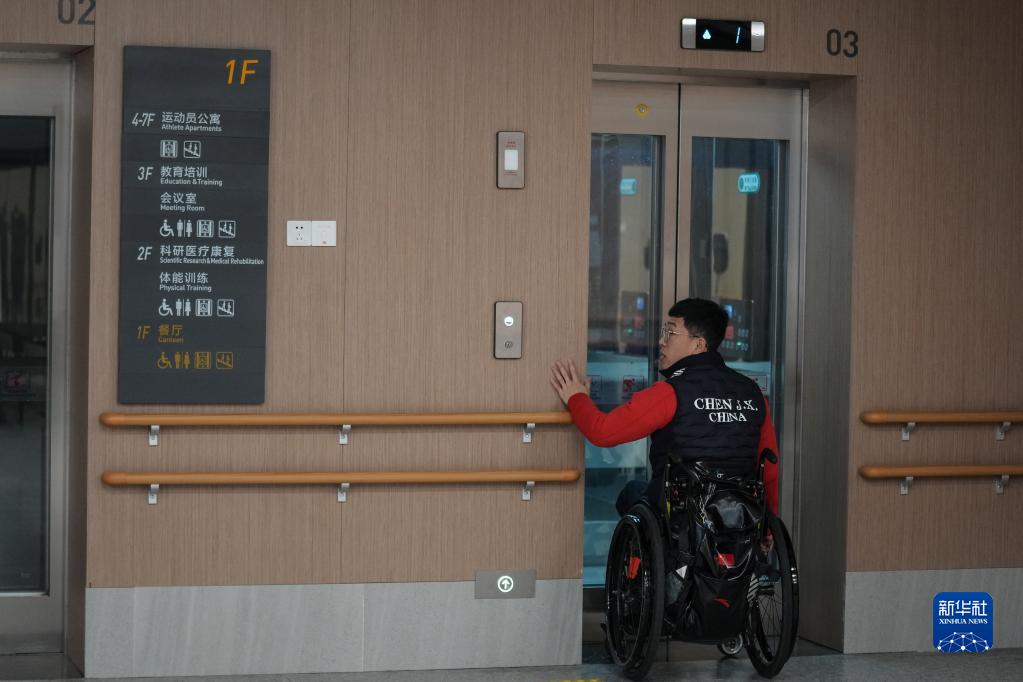 12月23日,在北京顺义中国残疾人体育运动管理中心,轮椅冰壶运动员陈建新午餐后到运动员公寓休息。