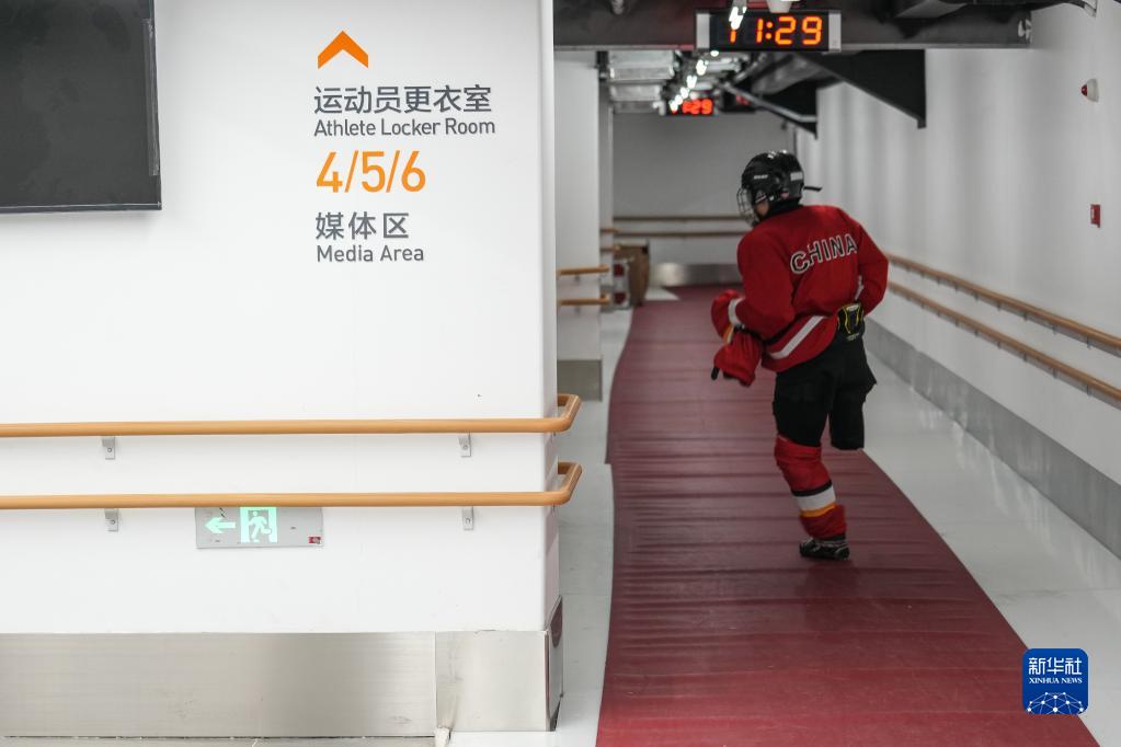 12月23日,在北京顺义中国残疾人体育运动管理中心的国家残疾人冰上运动比赛训练馆,中国残奥冰球队队员在训练后回到换衣间。