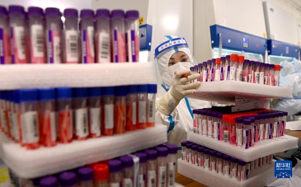 12月23日深夜,西安的街头清冷安静,在西安国际会展中心3号馆内刚刚启用的4套气膜实验室,身着防护服的工作人员正进行忙碌有序的核酸检测。据了解,4套实验室每日最高检测产能可达50万管,若按10混1采样方式,每日最高可完成500万人份的核酸检测任务。