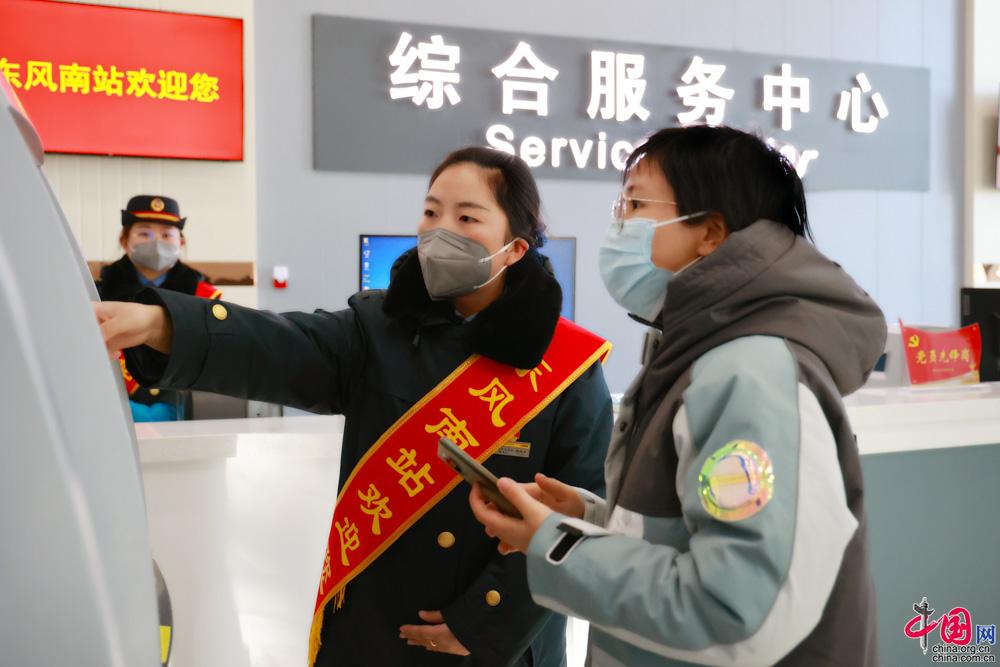 12时25分,东风南站彩旗飘飘,锣鼓喧天。一列载着首批乘客的火车缓缓驶进站台。中心近百名科技人员代表手捧花束,热烈欢迎乘客们的到来。