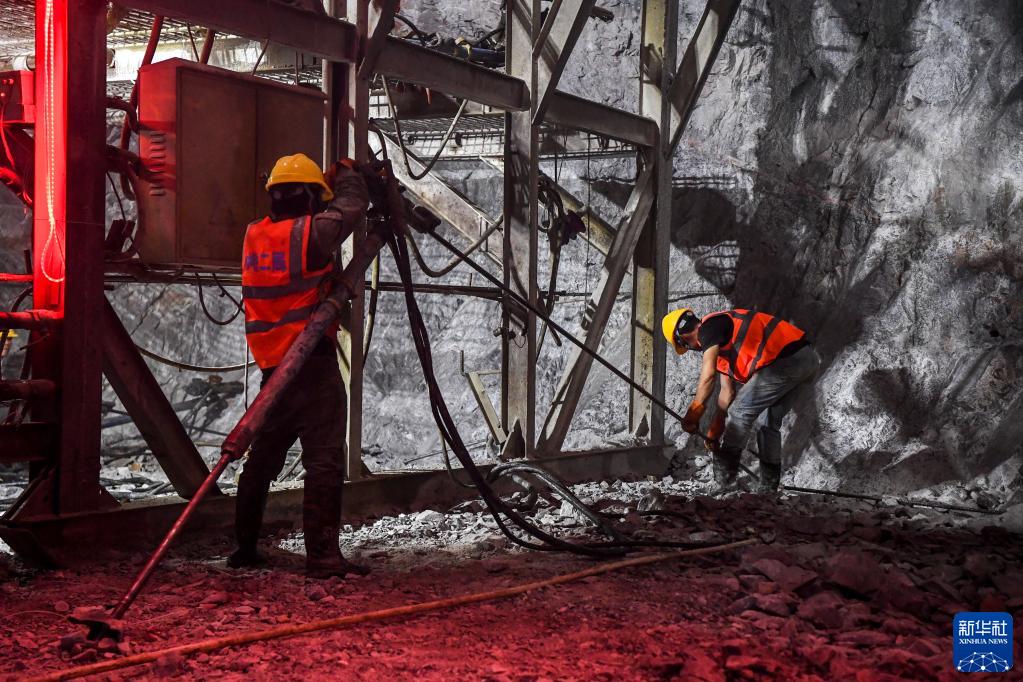 12月26日,在位于广西河池的贵南高铁永仁隧道内,工人在施工作业。
