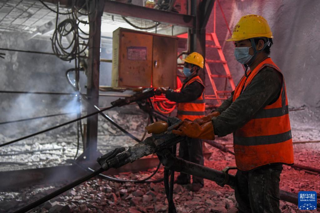 12月26日,在位于广西河池的贵南高铁永仁隧道内,工人在施工作业。