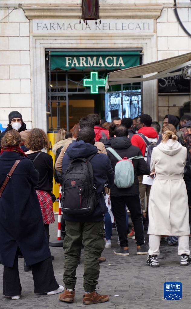 12月28日,人们在意大利罗马一处新冠病毒快速检测点外等待。