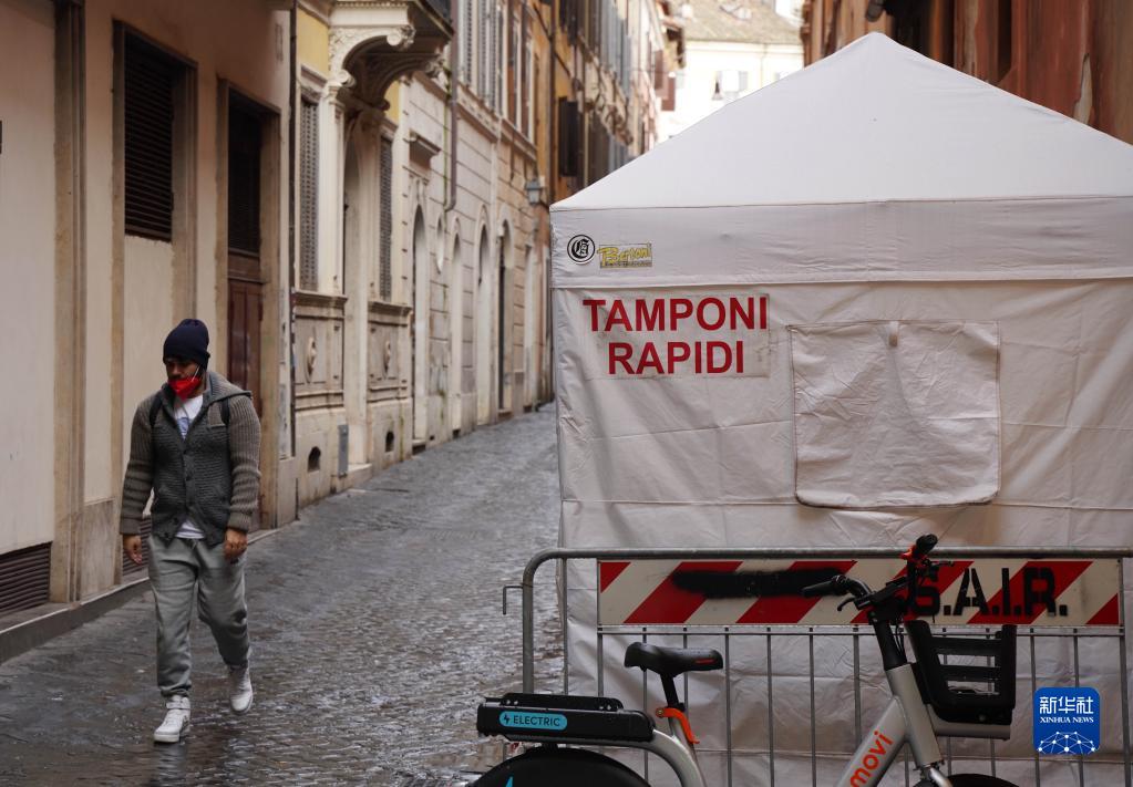 12月28日,一名男子经过意大利罗马一处新冠病毒快速检测帐篷。