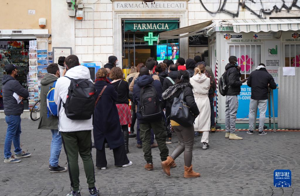 12月28日,人们在意大利罗马一处新冠病毒快速检测点外等待。