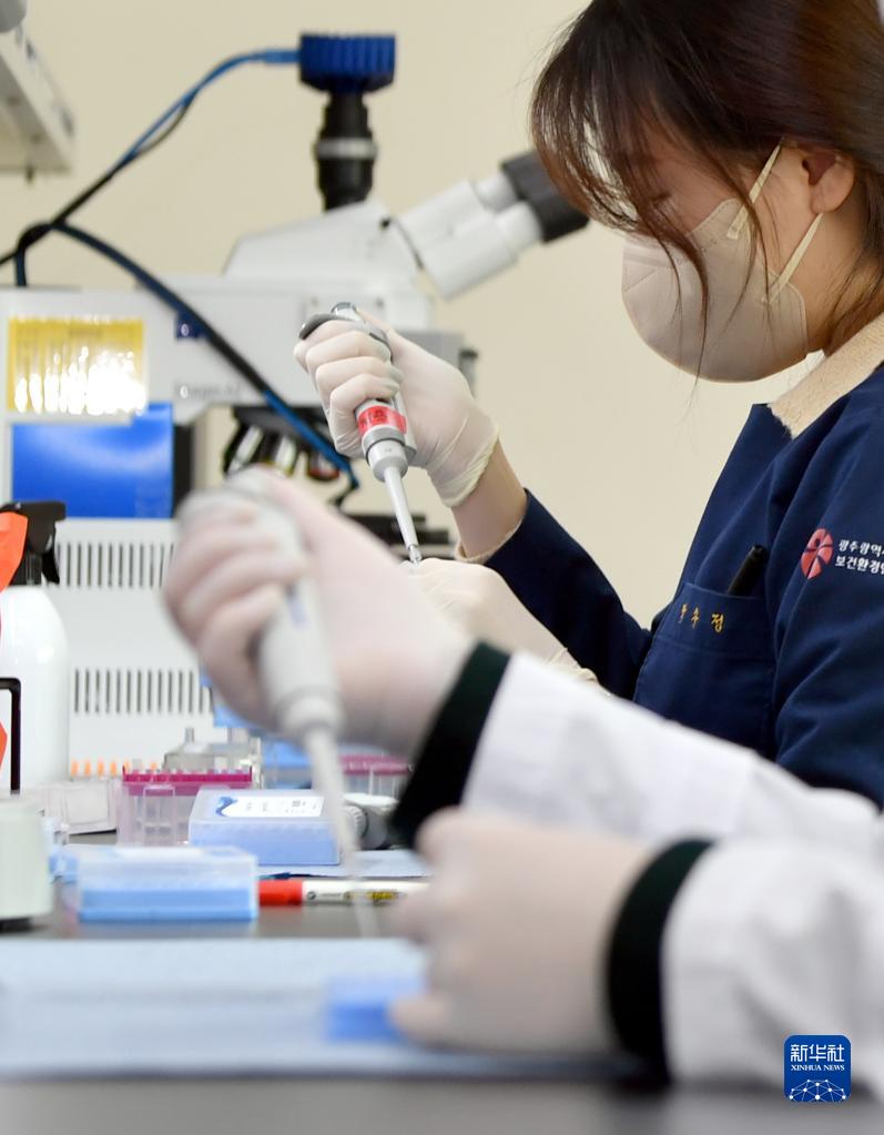 12月29日,工作人员在韩国光州保健环境研究院分子生物实验室检测样本。