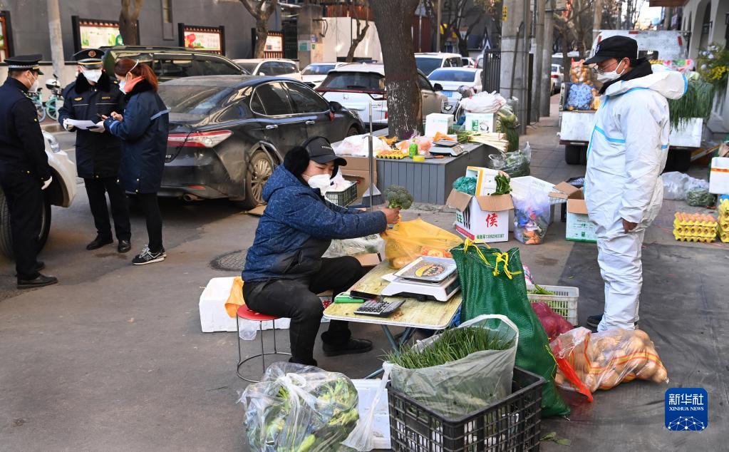 12月29日,西安市碑林区朱雀路一家小区门前临时设立的蔬菜小超市,为市民提供方便。新华社记者 陶明 摄