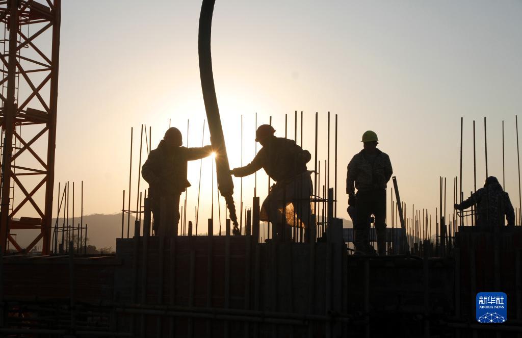 1月2日,工人在江西省宜春市靖安县双溪镇棚户区改造万家安置点工地施工。