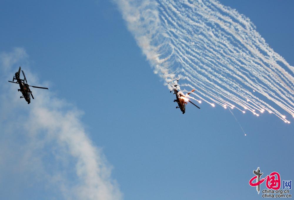 1月4日,陆军在某陆航旅训练场以视频会议形式进行陆军部队2022年开训动员。图为直升机发射干扰弹 。(摄影 张永进)