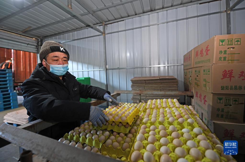 1月11日,商户在天津市红旗农贸综合批发市场整理鸡蛋。