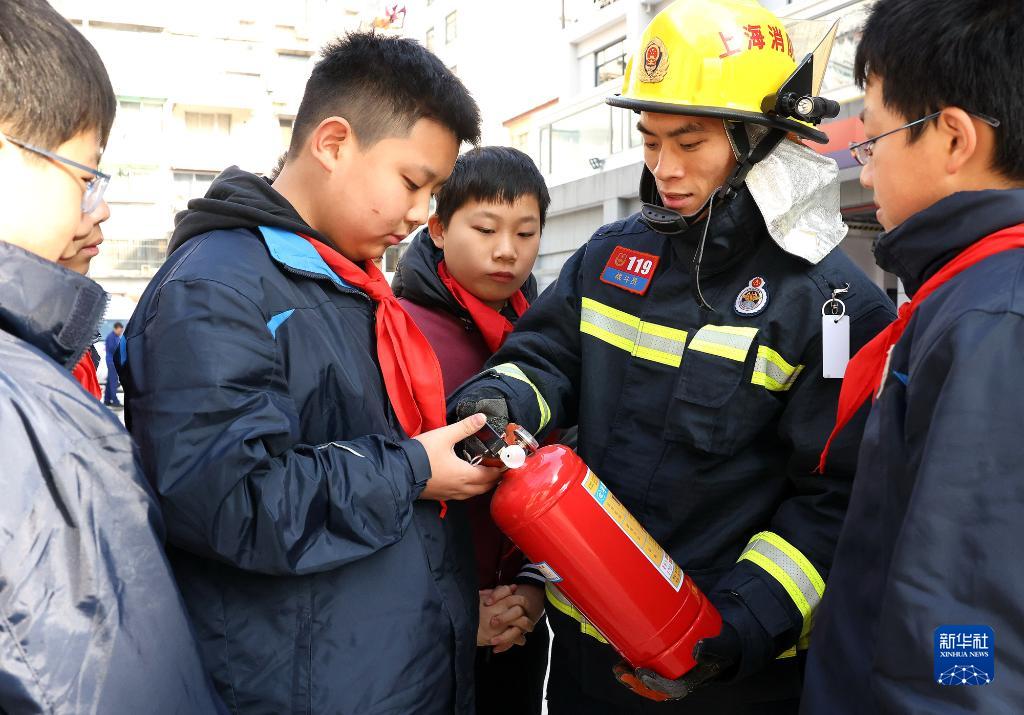 当日,上海市长宁区消防救援支队开展了一场特殊的消防救援实操课,一些初中生在消防救援站通过演练火场逃生、学用干粉灭火器、体验消防装备器材等环节,学习消防灭火自救技能。