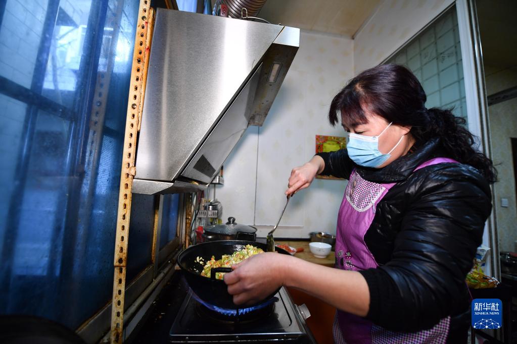 1月12日,三家村村民周娟为租住在自家房屋的居民制作午餐。