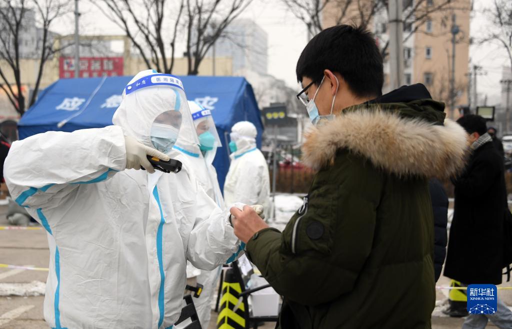 1月24日,在北京市海淀区中关村街道临时核酸检测采样点,工作人员录入被采样人员信息。