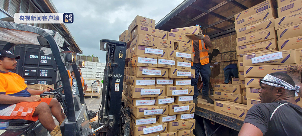 汤加海底火山喷发并引发海啸后,中国驻斐济使馆紧急筹集了价值100万元人民币的援助物资,包括饮用水、应急食品、发电机、水泵、电锯、个人防护和医疗用品等,紧急运往汤加。(总台记者 邓雪梅)