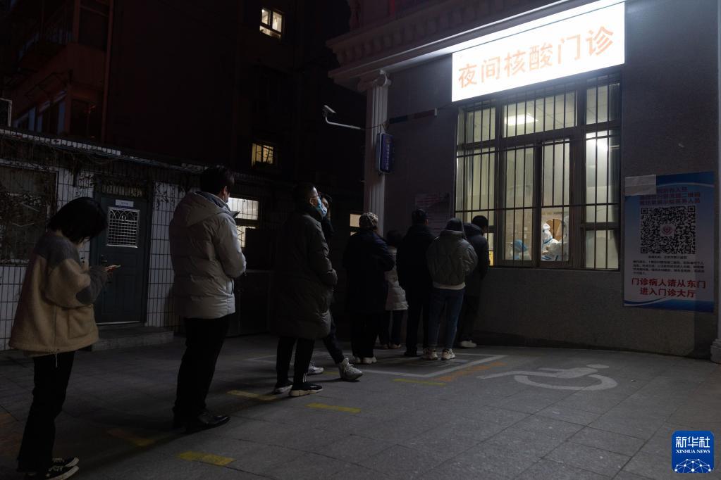 1月27日晚,在北京市第六医院24小时核酸检测门诊,市民排队等候核酸采样。