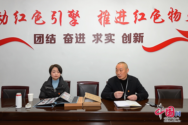 自贡新城物业有限公司总经理助理、党支部书记胡世友(右)介绍红色物业情况(摄影 廖志全)