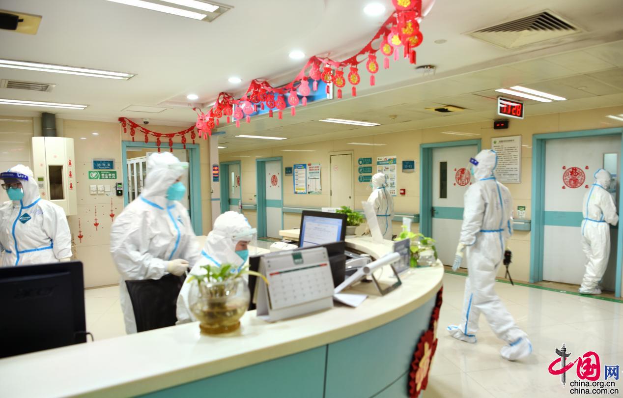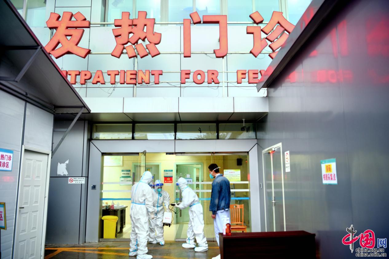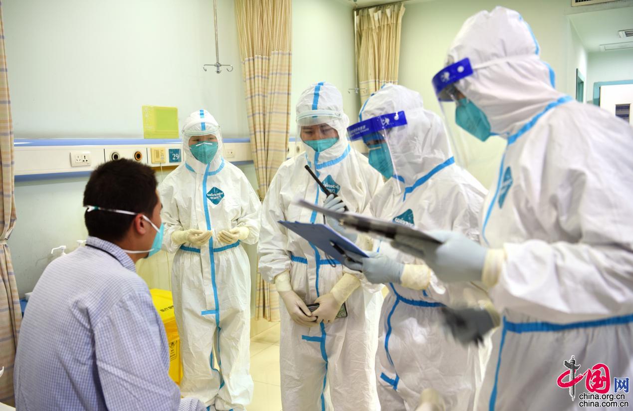 全副武装工作人员前往隔离病房对密接者展开流调。曾理/摄