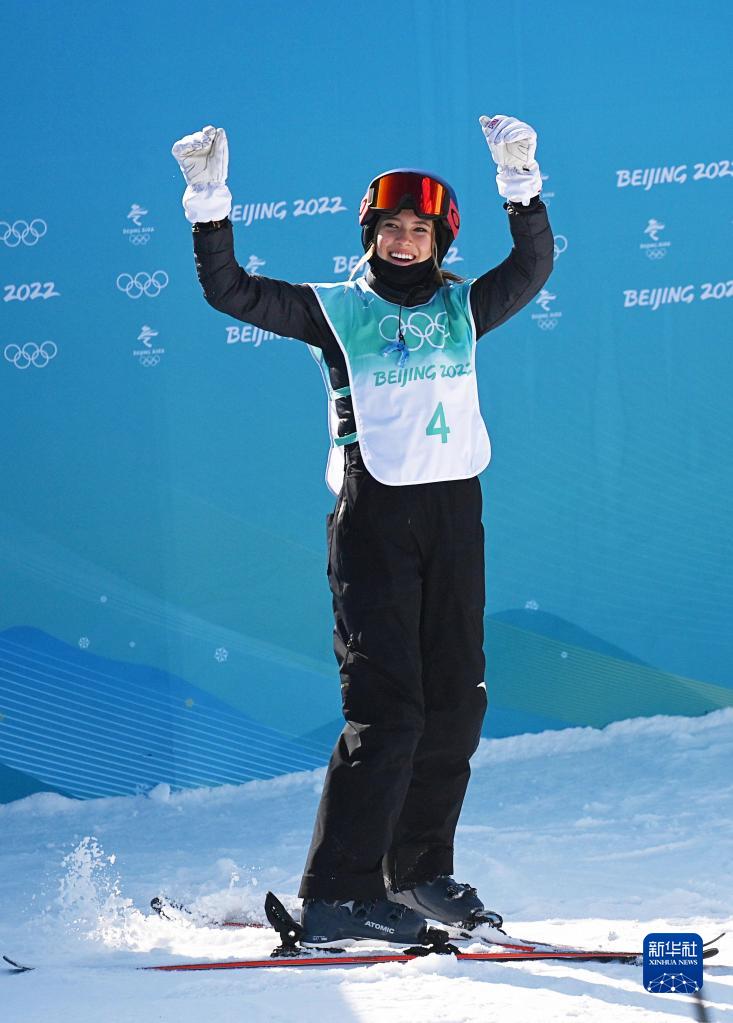 2月7日,中国选手谷爱凌在比赛后庆祝。