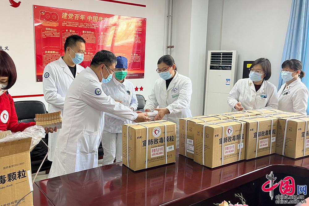 2月7日(大年初七),原本是春节假期后返工的第一天,但受近期北京丰台疫情影响,当地疫情防控一线医务人员、志愿者、区卫生健康委员会及相关部门早已连续奋战半个多月,持续在春节期间加班加点,严控京城西南不断出现的疫情。为了带去社会各界对一线防疫人员的慰问,“同心•共铸中国心”组委会在北京市丰台区卫健委的大力支持下,于当天将紧急调拨的防治新冠肺炎药品“宣肺败毒颗粒”捐赠并发放到丰台区医务人员手中。