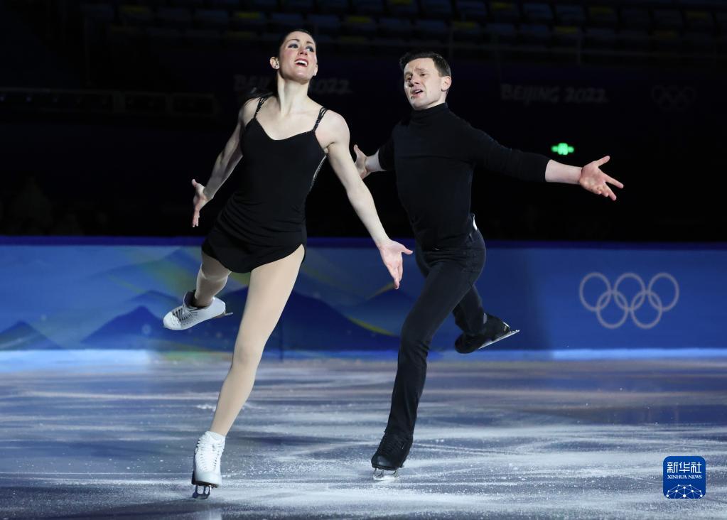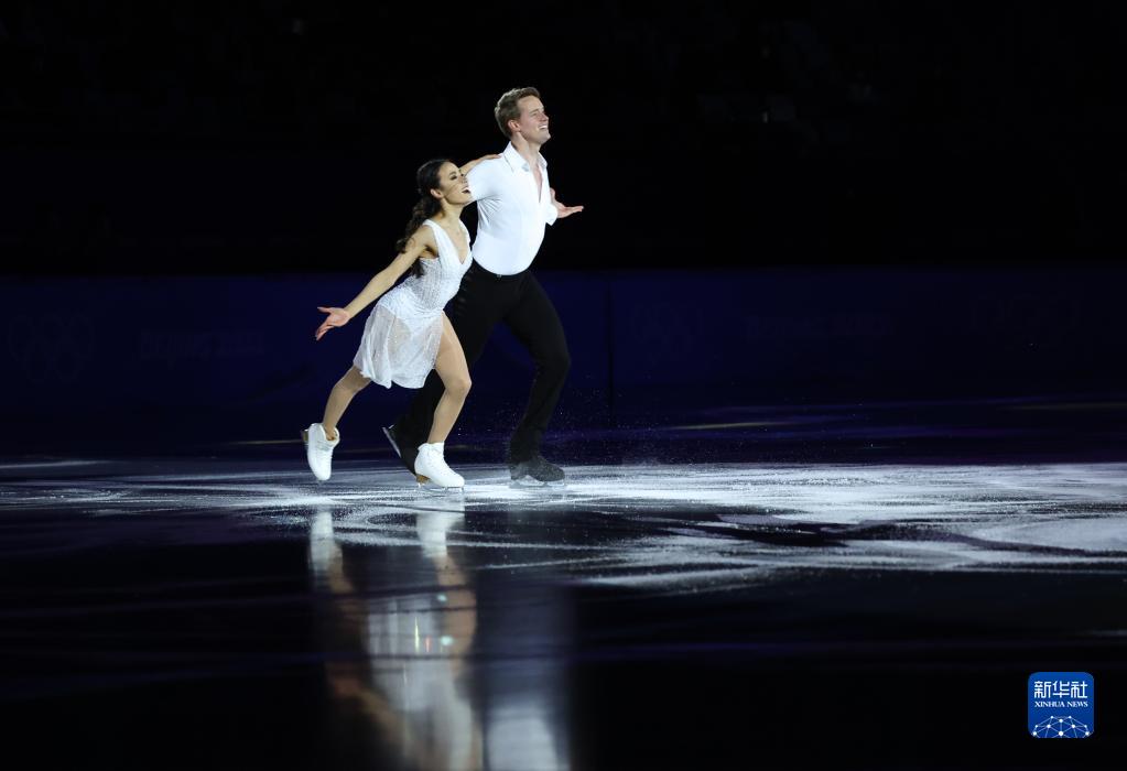 2月20日,意大利选手马尔科·法布里(右)和查琳·吉尼亚尔在表演滑中。当日,北京2022年冬奥会花样滑冰表演滑在首都体育馆举行。新华社记者 张玉薇 摄