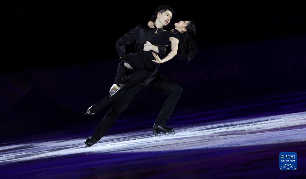 2月20日,中国选手王诗玥(右)和柳鑫宇在表演滑中。当日,北京2022年冬奥会花样滑冰表演滑在首都体育馆举行。新华社记者 张玉薇 摄