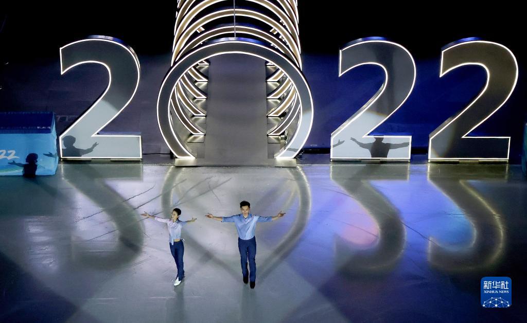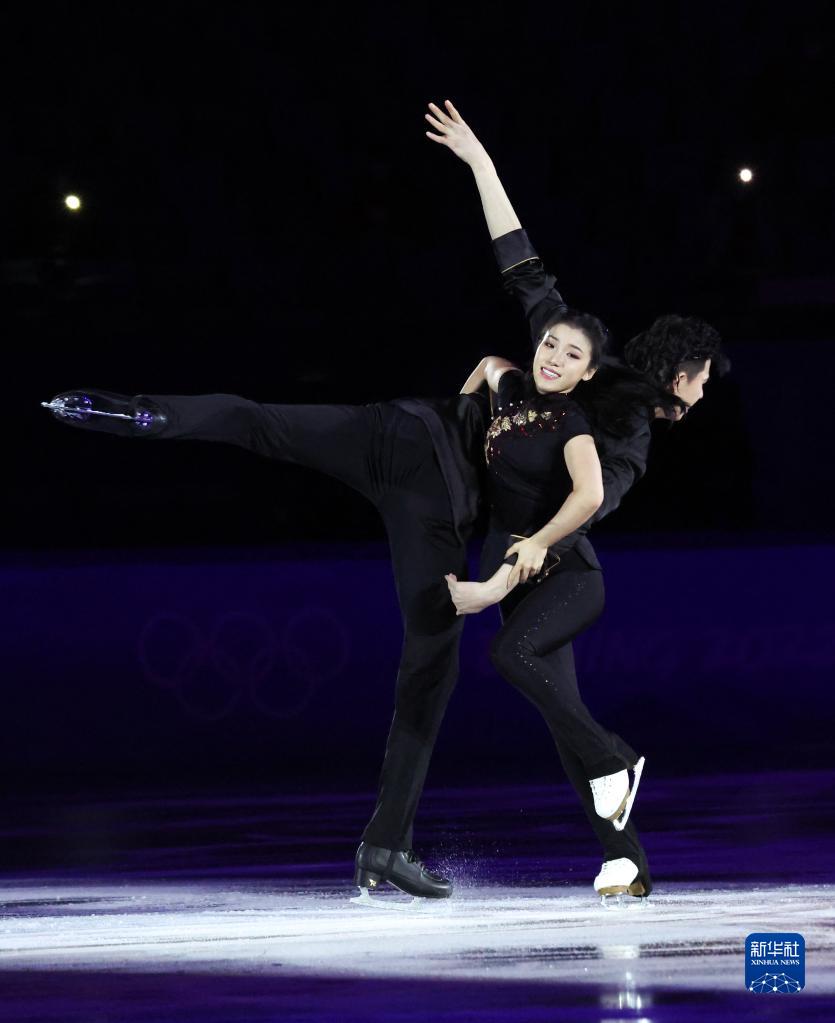 2月20日,彭程(左)、金杨在表演滑中。当日,北京2022年冬奥会花样滑冰表演滑在首都体育馆举行。新华社记者 曹灿 摄