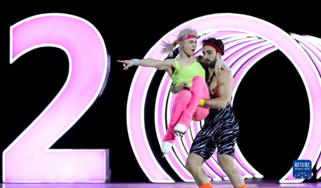 2月20日,西班牙选手奥利维娅·斯马特(左)和阿德里安·迪亚斯在表演滑中。当日,北京2022年冬奥会花样滑冰表演滑在首都体育馆举行。新华社记者 张玉薇 摄