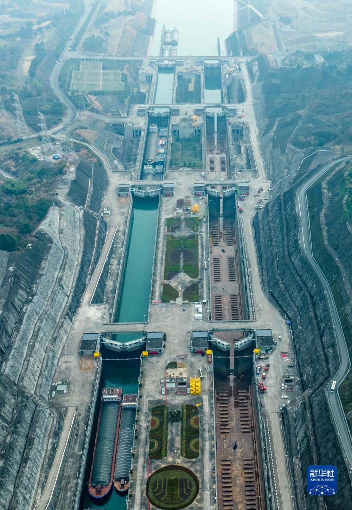 2月21日拍摄的三峡五级船闸全景(无人机照片)。