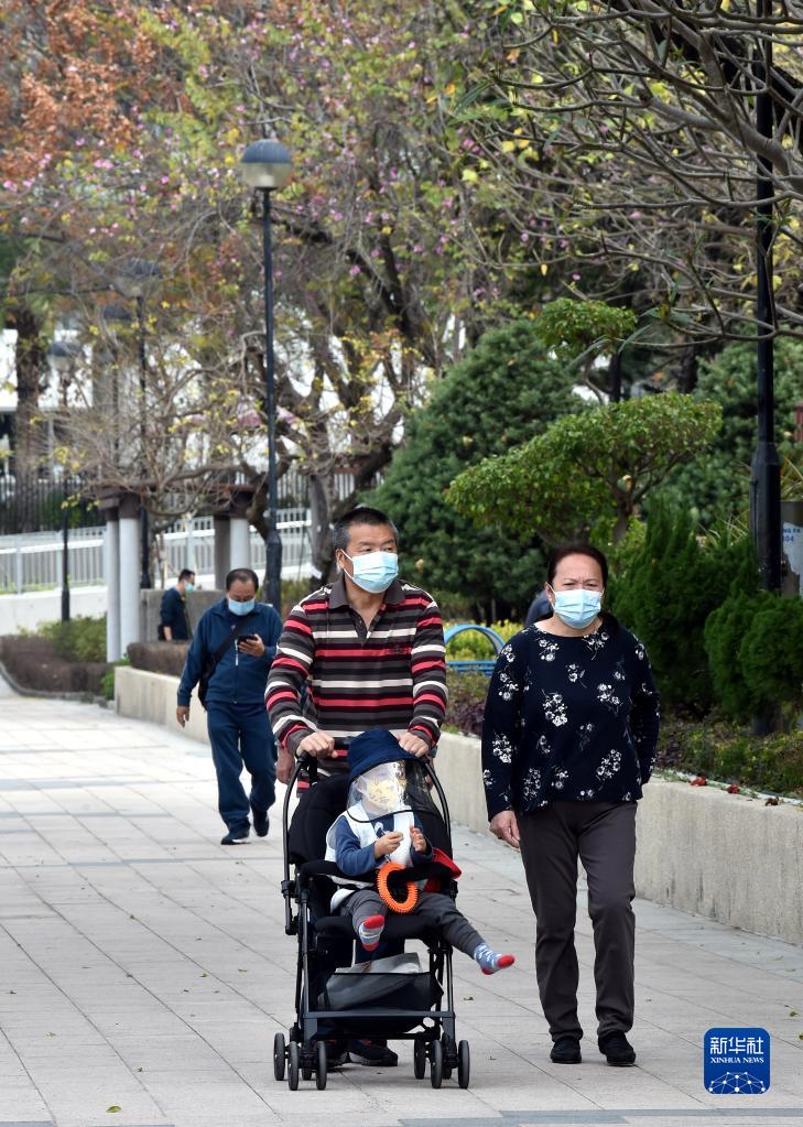 3月3日,在香港荃湾,市民佩戴口罩出行。