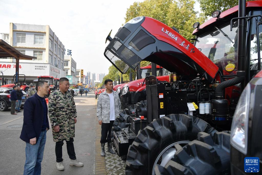 在江西省南昌县农机大市场,辜道朋(中)和儿子辜秉发在选购农机(3月5日摄)。