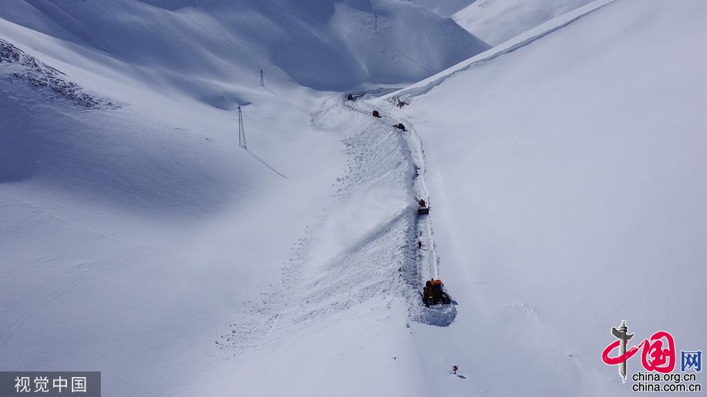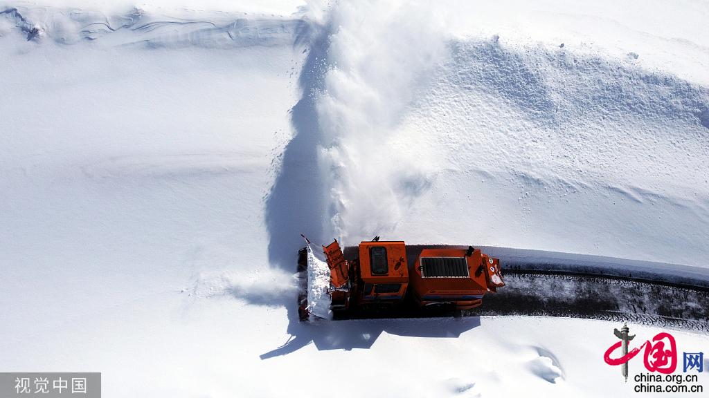 当地时间2022年3月8日,土耳其凡城,土耳其高速公路总局在清理积雪。11辆车和25名人员参与行动,该地区积雪厚度超过8米。图片作者:Anadolu Agency/视觉中国