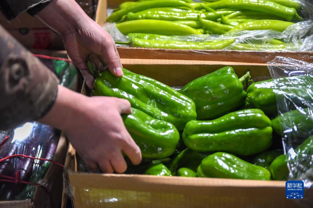 3月15日,商户在吉林市东北亚农产品批发市场摆放蔬菜。