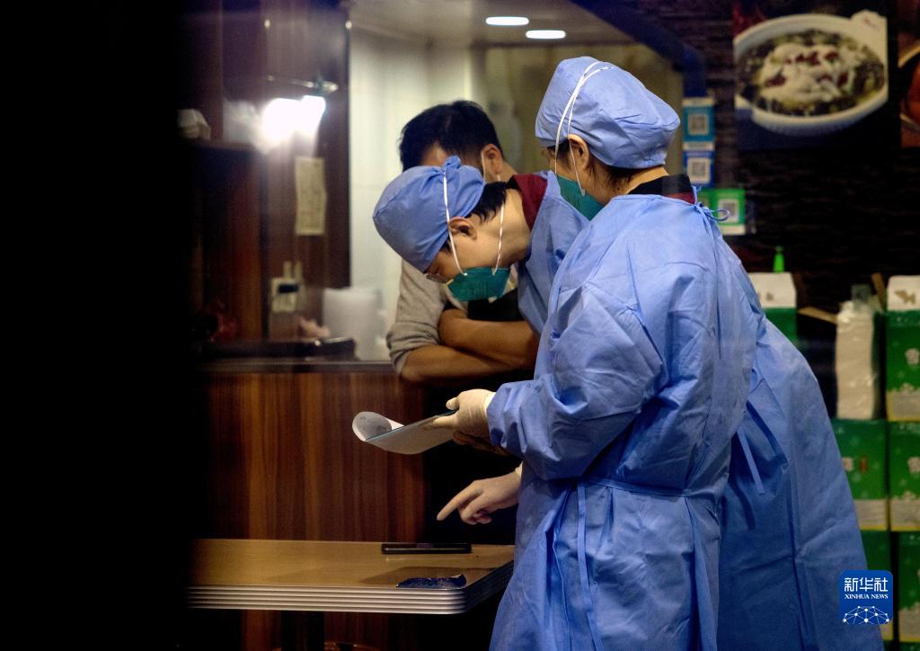 3月17日凌晨,流调人员在相关场所进行排摸。