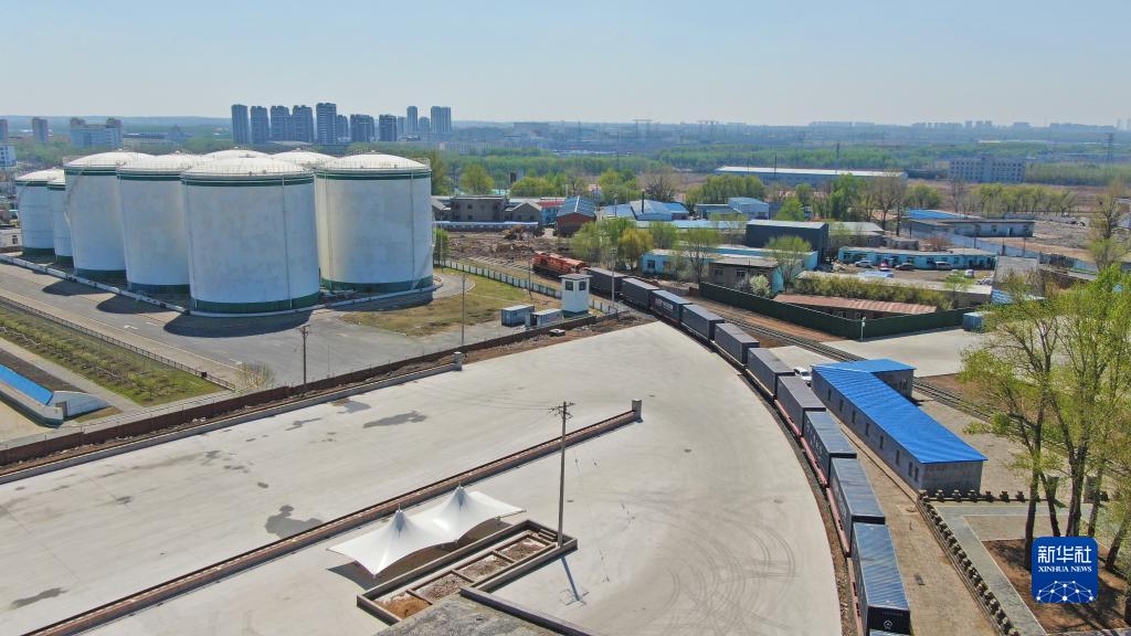 4月22日,辽宁首趟中老铁路国际货运列车正式开行(无人机照片)。