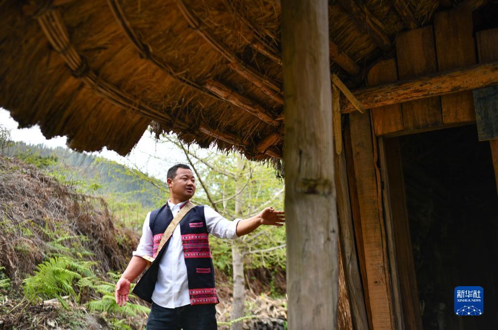 迪龙在村子里的老房子前(4月19日摄)。