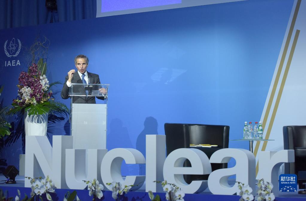 4月25日,国际原子能机构总干事格罗西在奥地利维也纳举行的首届“核法律:全球辩论”国际大会开幕式上致辞。