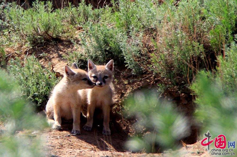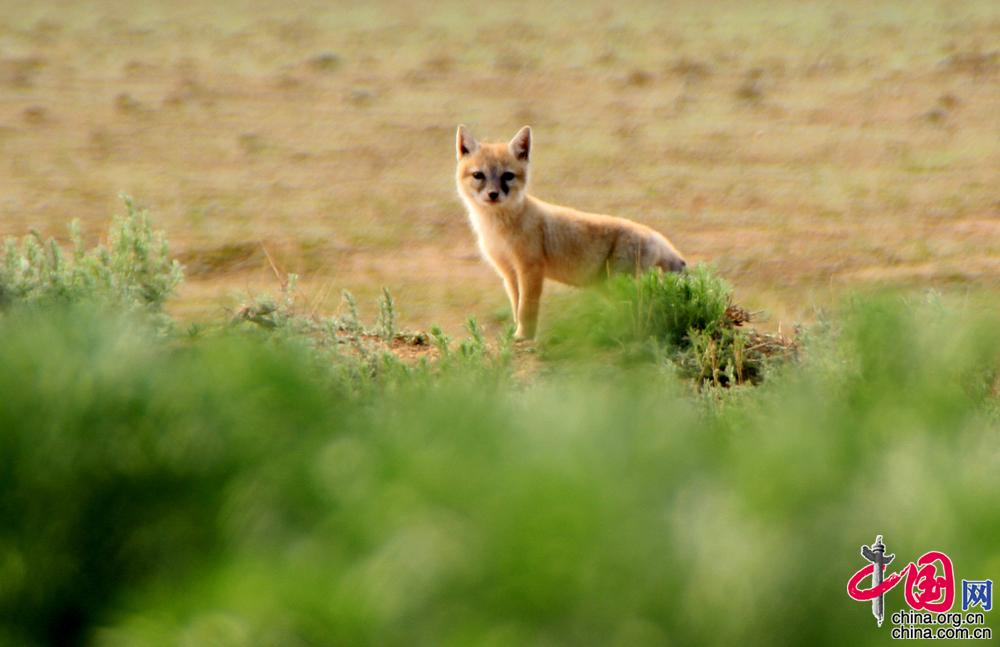 2022年5月6日,新疆塔城地区裕民县戈壁滩上呆萌可爱的小狐狸。在新疆塔城地区裕民县城周边戈壁滩上经常出现狐狸的身影,这些狐狸在戈壁滩上以土穴为巢穴,通常猎食小动物。图片来源:视觉中国