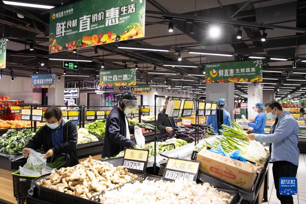 5月16日,在上海市徐汇区一家超市门店,市民在选购商品。