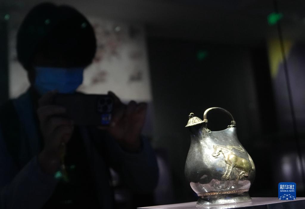 5月18日,游客在陕西历史博物馆参观大唐遗宝——何家村窖藏出土文物展。