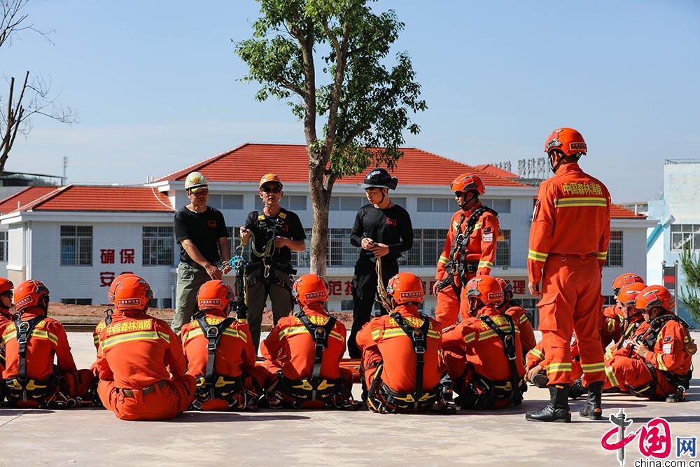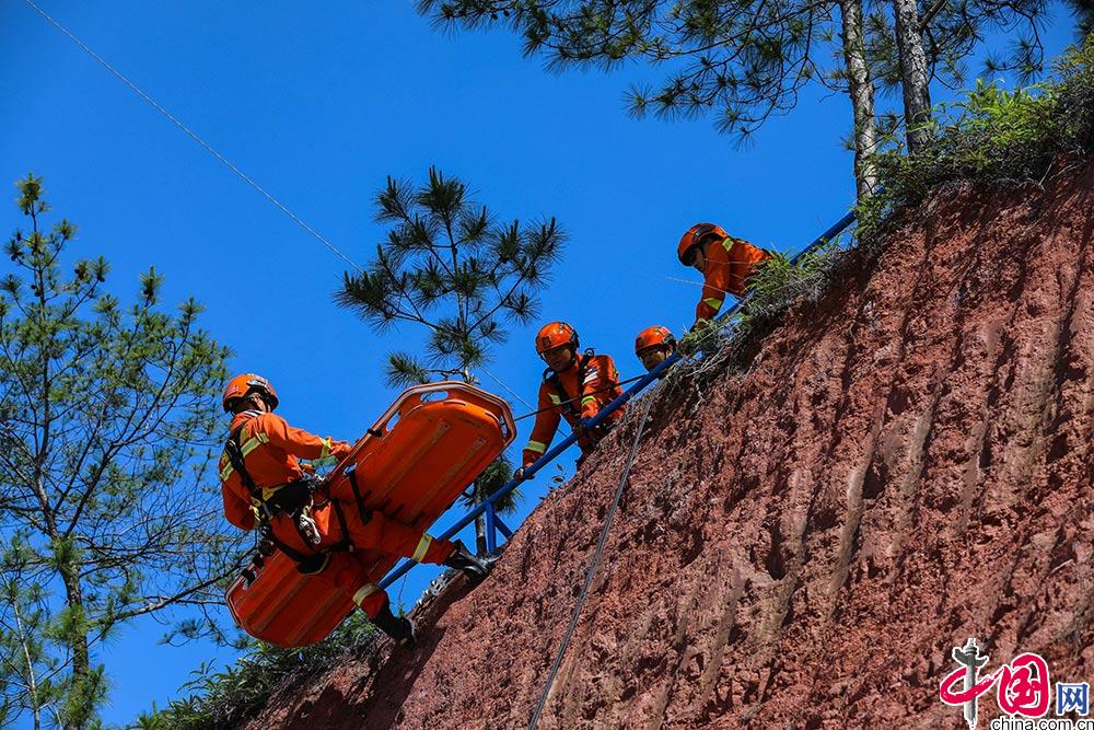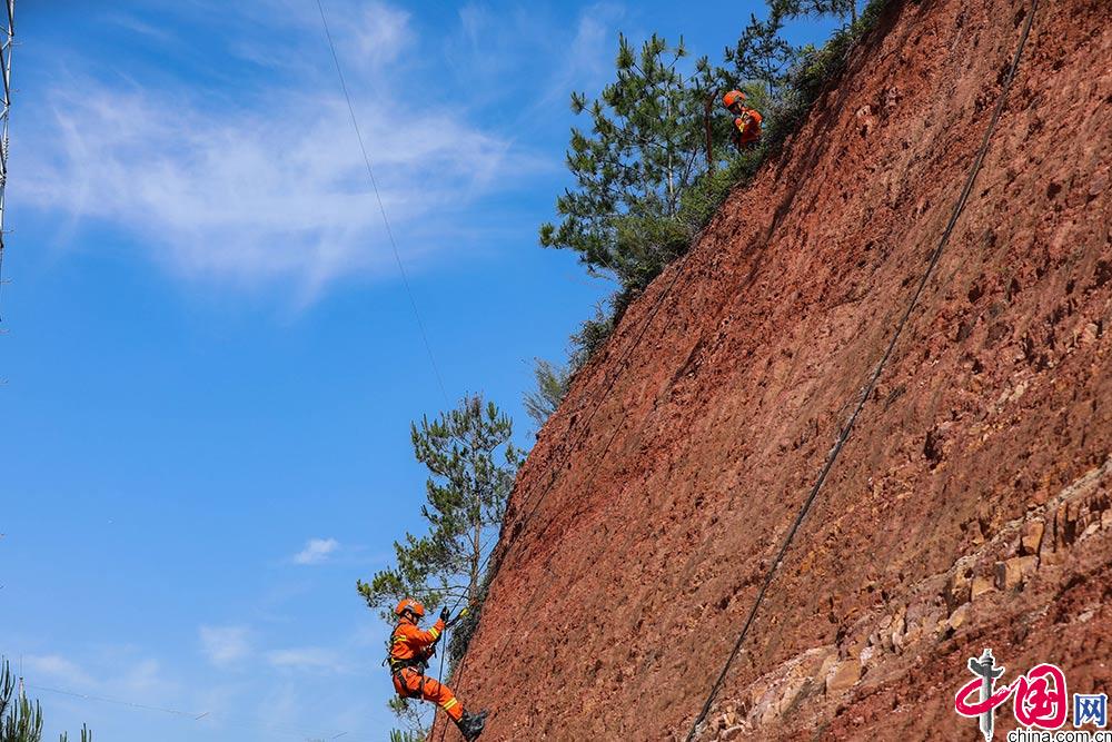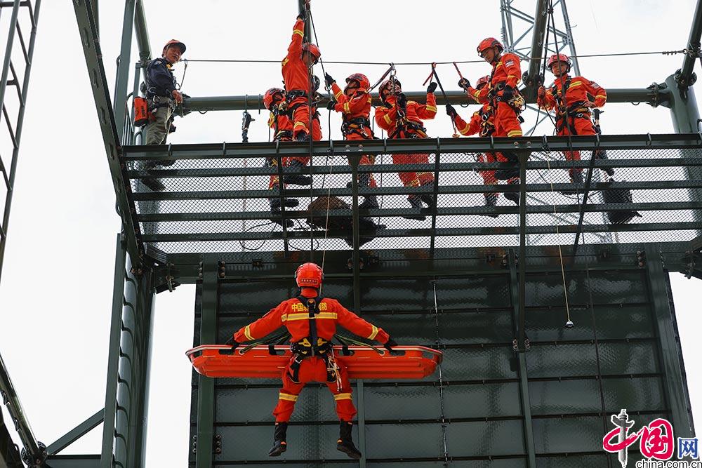 图为培训人员正在进行垂直救援(李袁辉摄)